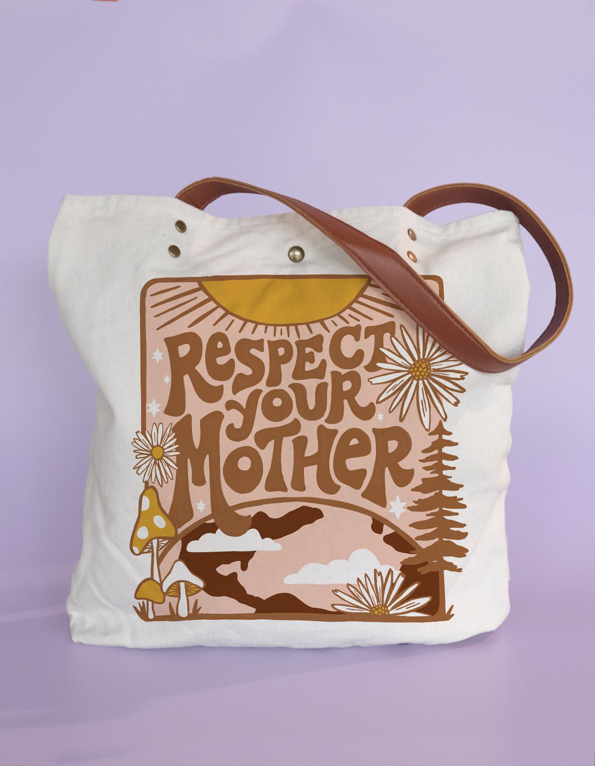 Our canvas tote bags are custom made with heavy-weight, natural canvas, and vegan leather straps. We added functional details like brass snap closures and a handy interior pocket to keep your phone and keys at close reach. Our hand-painted designs are screen printed on the exterior in brilliant 5 and 6 color processing.