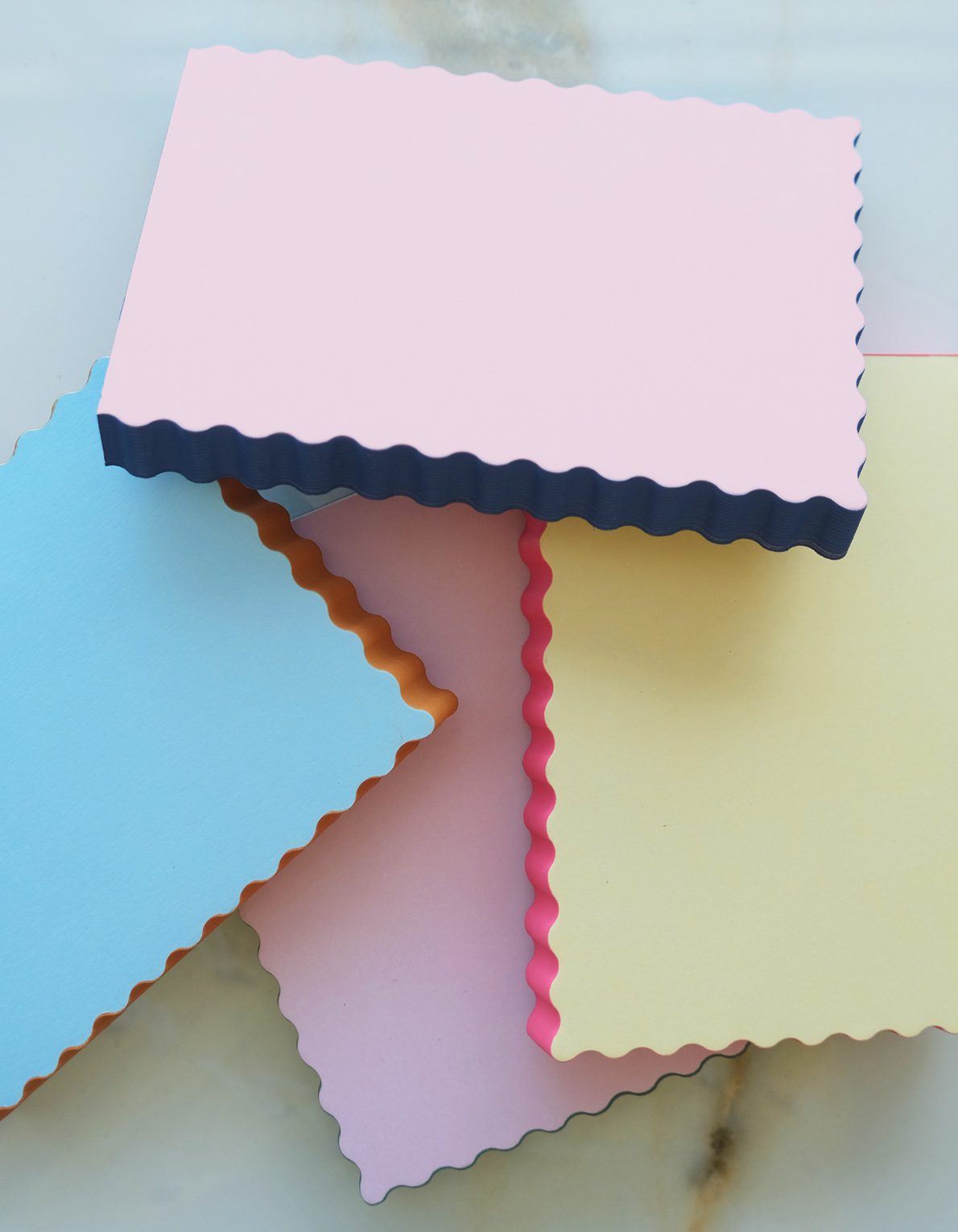 Our Die Cut Pads are created in fun, yet functional shapes & include edge-painted sides in contrasting colors. Scallop & Mini Wave shaped pads include blank pages, and our Wavy shaped pads feature lined pages.