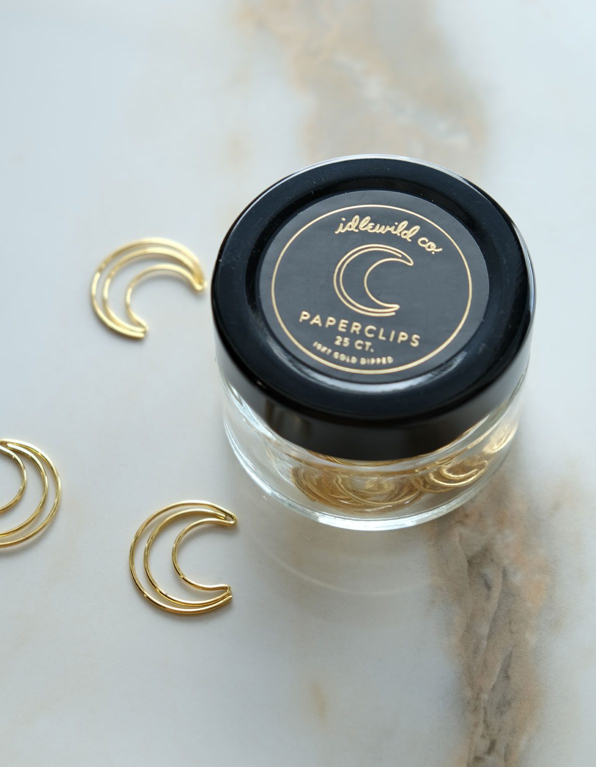 Gold Plated Paper Clips (Jar of 25) | Crescent Moon