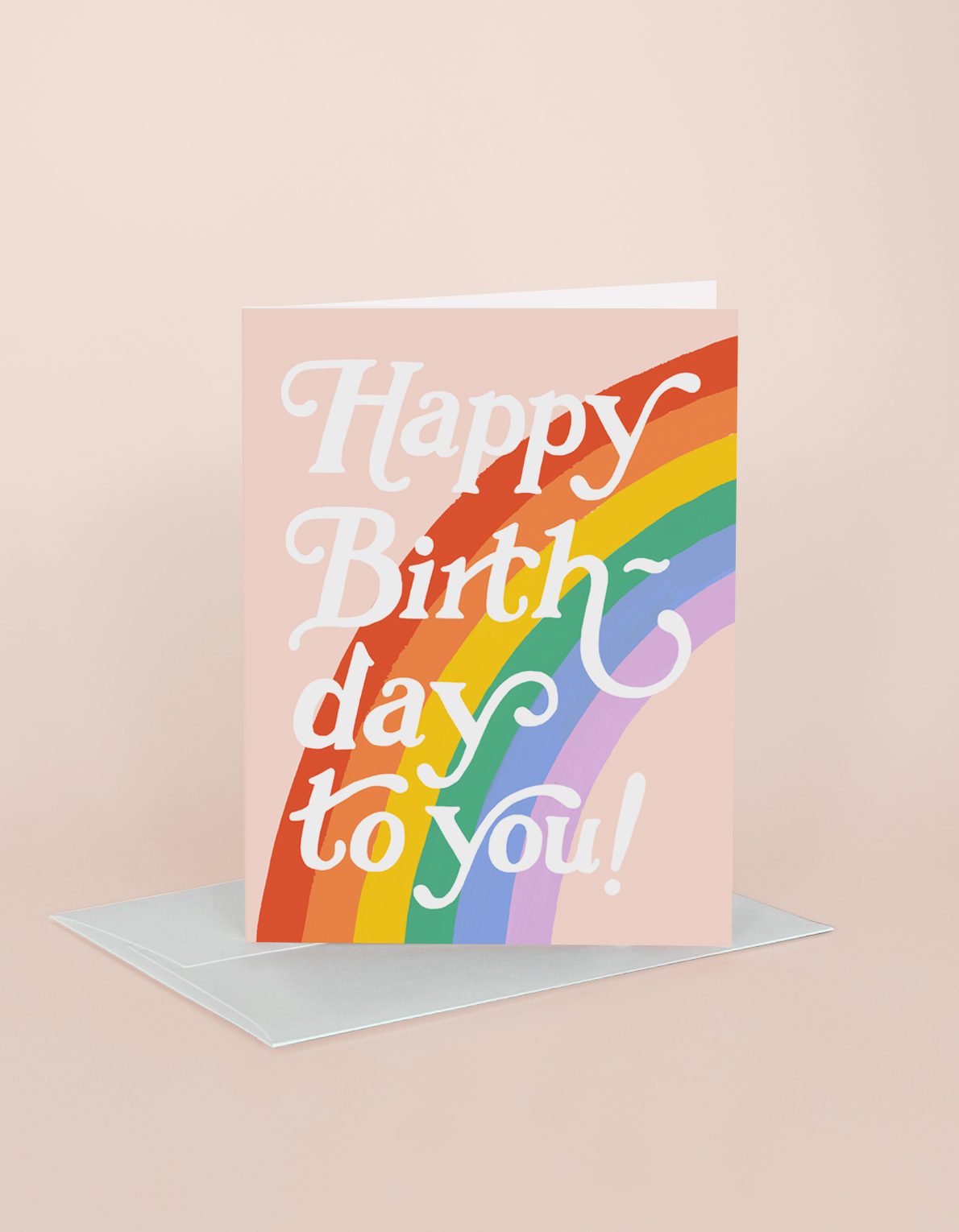 Festive 70’s style lettering in a puffy embossing overlays this bright birthday rainbow!