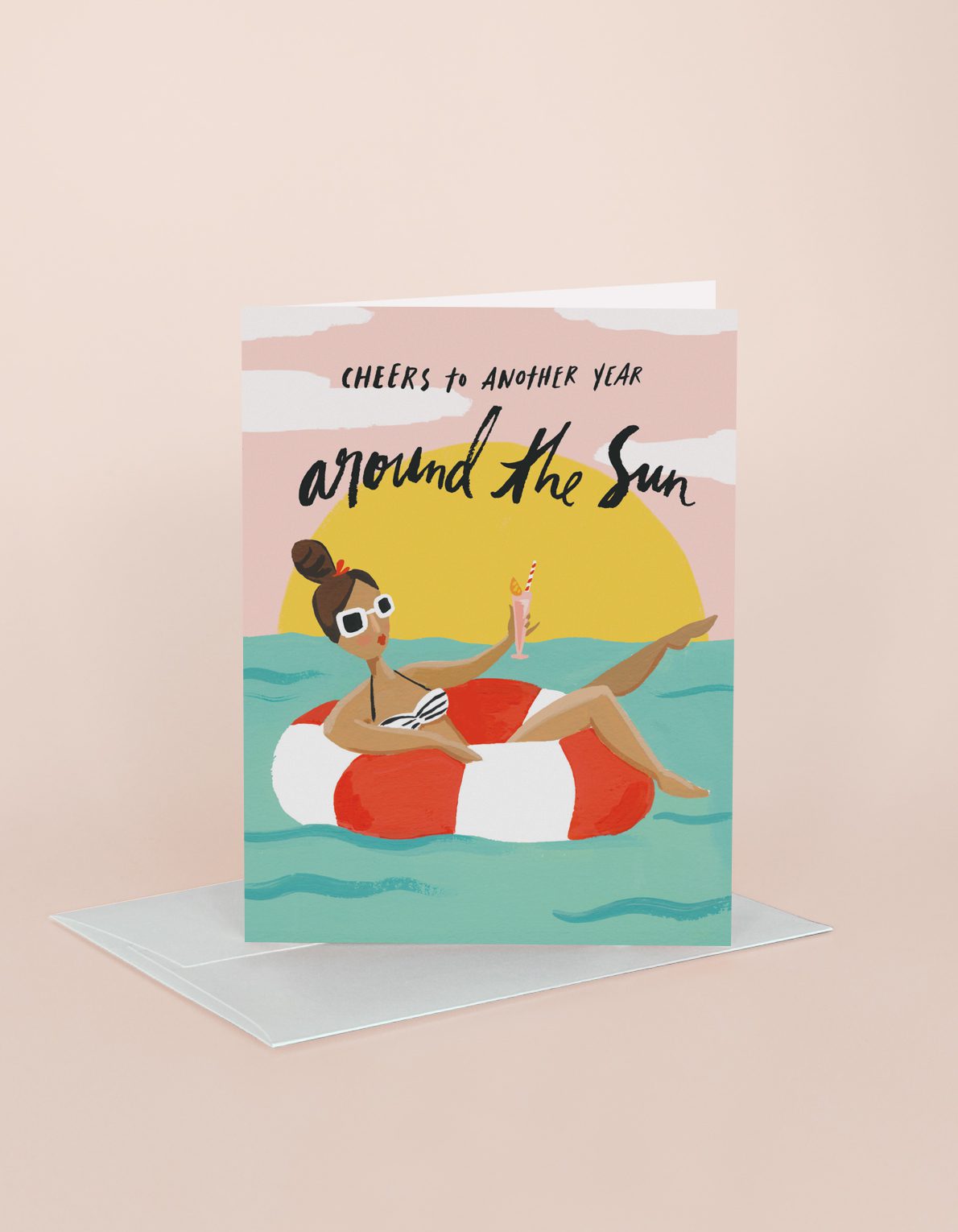 The ideal birthday scene hand-painted in bright colors; cocktail included!