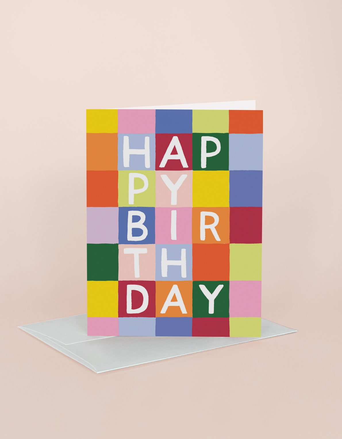 An uber-colorful patchwork backgrounds sends the brightest birthday wishes.
