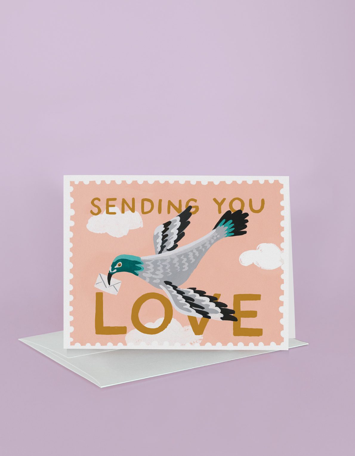 Our style of Air-Mail, this brightly painted carrier pigeon brings messages from abroad! The perfect greeting for jotting a note to loved ones both near and far.